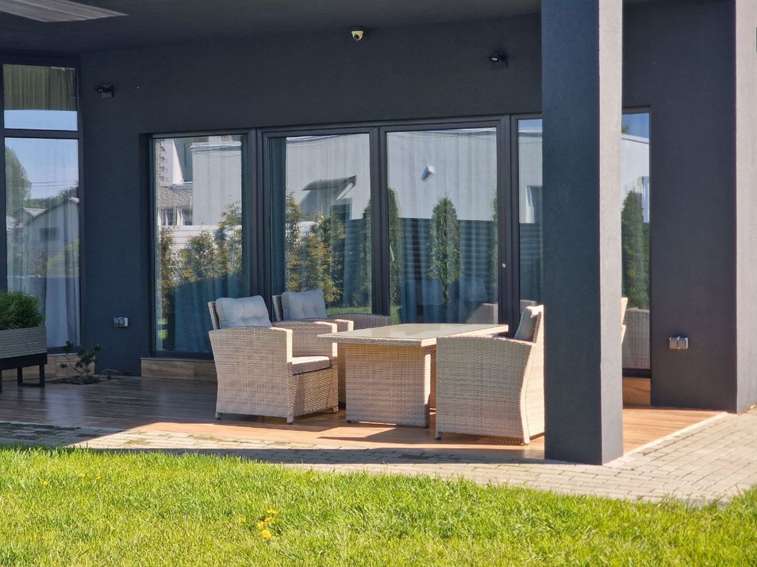Дом расположен в закрытом коттеджном поселке в 10 минутах от Калининграда и 25 от морского побережья.