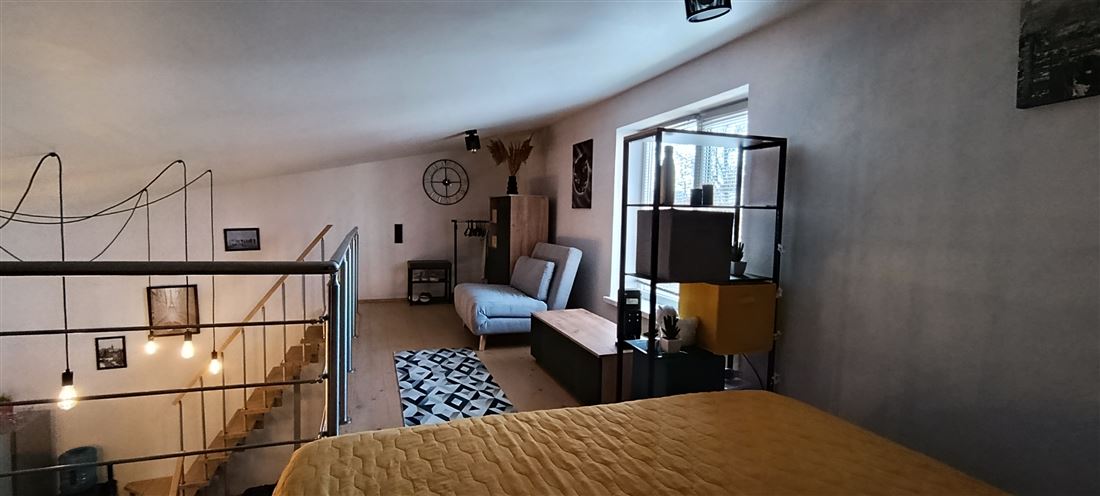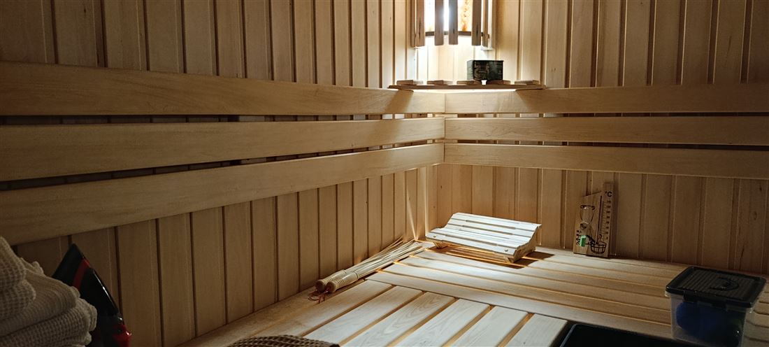 На полу уложена плитка, смонтирован теплый пол (электрический). На второй этаж-антресоль ведёт удобная лестница из натурального дерева.