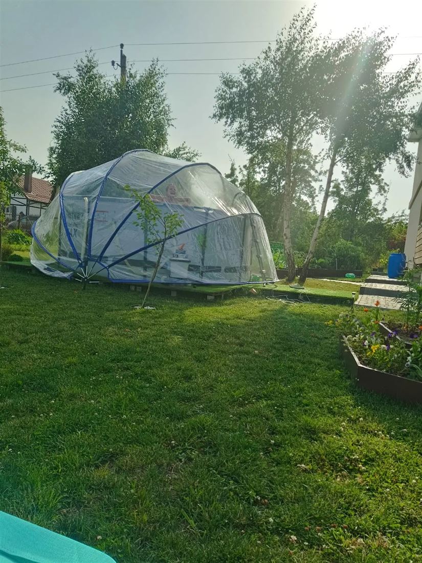 Участок сухой и ровный . Имеется теплица, парковка, хоз.постройка, дровник для мангала, крытый бассейн.