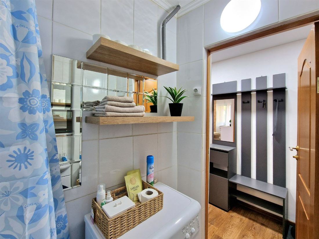 Есть стиральная машина, фен, утюг, сушилка, гладильная доска, пылесос.